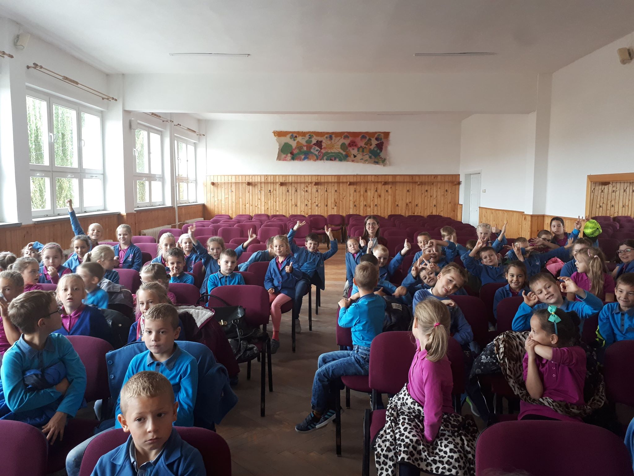 Az interaktív, játékos foglalkozásra a 3. és 4. osztályos diákokat vártak. A dedikálásra elhozott könyvek meghatották az írónőt, és boldogan tett eleget a negyedikesek kérésének.